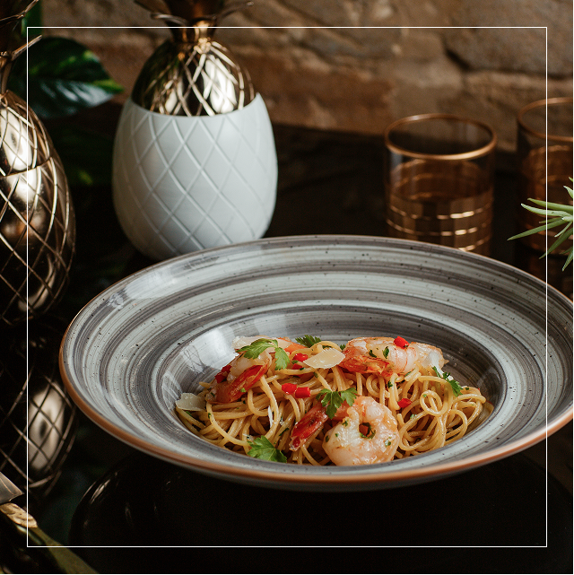With food: a refreshing aperitif that pairs well with meat (marinated beef carpaccio, T-bone), fish dishes (marinated salmon fillet on young lettuce with Mediterranean herbs), and pasta (fresh pasta with Adriatic scampi).