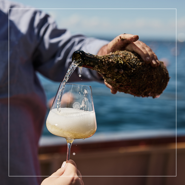 The strong currents continuously move the bottles and keep the wine alive in the process. This in turn gives the liveliness of Mare Santo bubbles its refreshing taste and the higher content of bubbles leave a richer sparkle in the mouth.